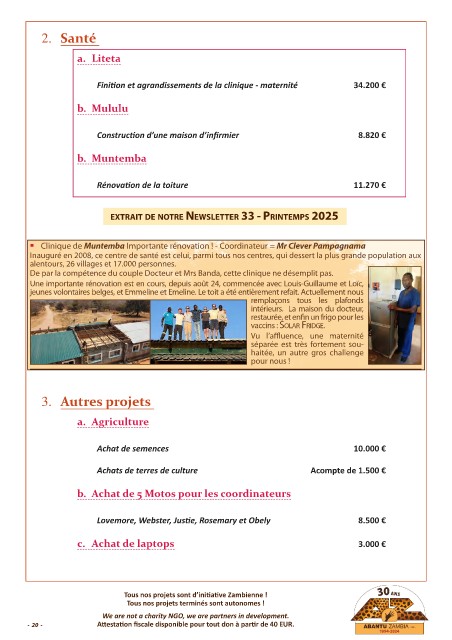 et de continuer leur soutien scolaire. Nous n’avons pu en prendre que quelques temps ! Finition et agrandissements de la clinique - maternité 34.200 €